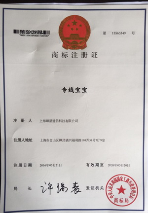 上海硕星通信喜获“专线宝宝”商标注册证书