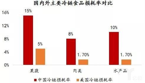 这是由于国内普遍缺乏冷链意识,消费者对生鲜品是否需要冷链保鲜尚没有严格要求,同时我国冷库分布区域性不均衡也导致大量产品的冷链环节出现“断链”现象。在不具备充分冷链流通的情况下,果蔬类食品损耗量高达15%(发达国家的损耗量约为5%),损耗价值超过500亿元,造成了巨大的浪费。